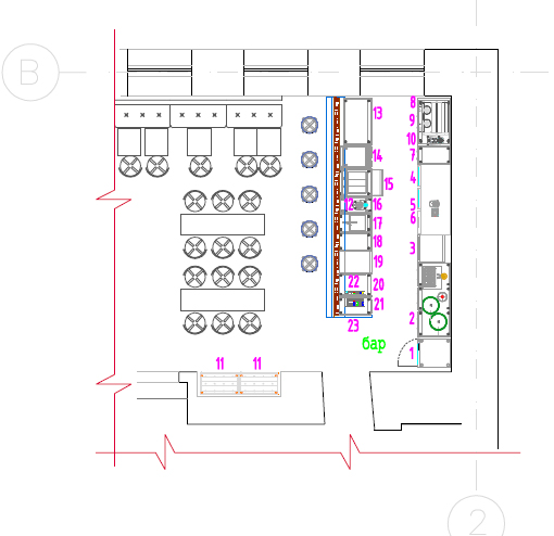 Во втором – это поставка только технологического оборудования (например, посудомоечная машина, барный холодильный шкаф, столы, настольное оборудование).
