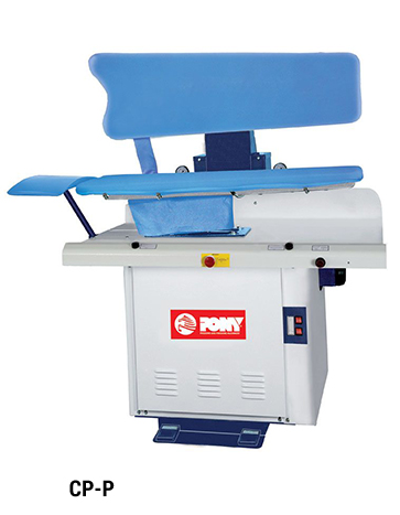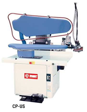 Гладильный пресс Pony CP-U / CP-UP / CP-US / CP-P / CP-UL / CP-UPL / CP-PL представляет собой мощный скоростной пресс пневматического действия с разными формами столешницы. Все прессы подготовлены к подключению к централизованным подключениям или с встроенными бойлером (от 9 до 20 л), аспиратором и компрессором.