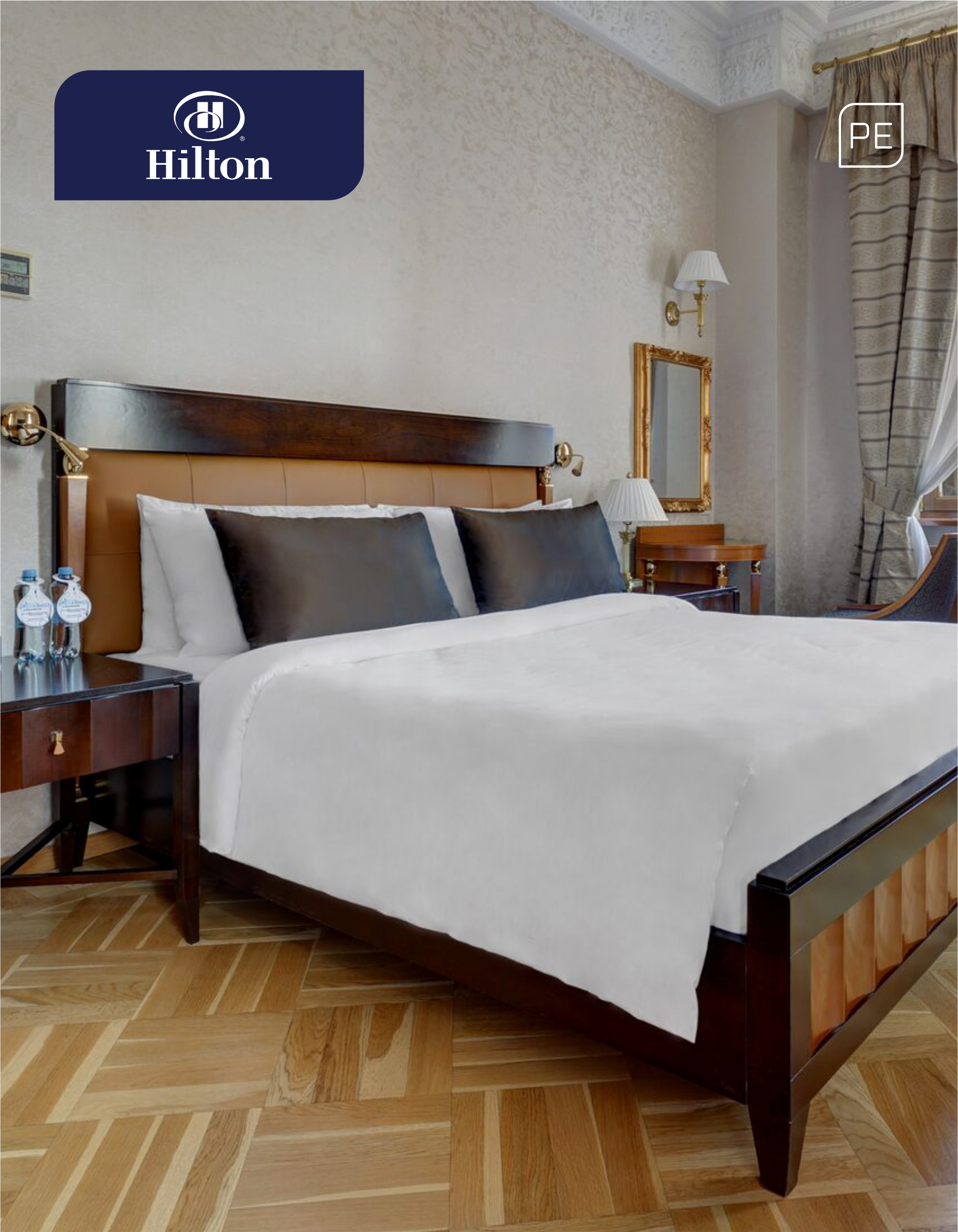 В каталоге компании ПРОФЭКВИП представлен обширный ассортимент профессионального текстиля для номерного фонда отеля. Здесь вы можете подобрать и заказать готовое постельное белье для сетевых отелей Hilton. Отгрузка осуществляется со склада в Москве и из Европы.