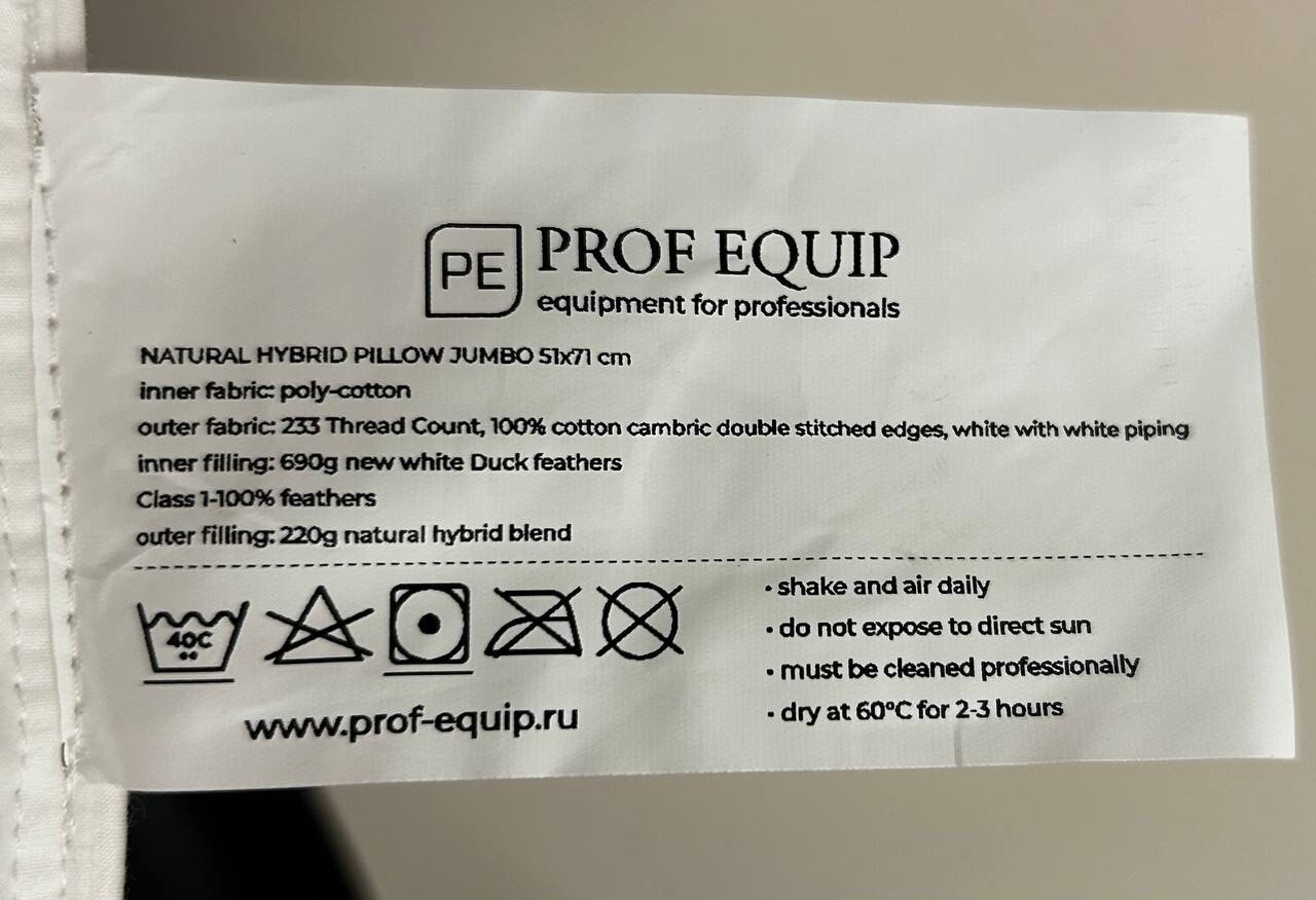 Подушка NATURAL HYBRID PILLOW JUMBO, 51×71 см – премиальная подушка от бренда ПРОФЭКВИП создана для профессионального использования в отелях и апартаментах высокого уровня. Изготовлена в России с учётом требований гостиничного сегмента. Внутренняя камера выполнена из поли-хлопка и наполнена 690 г новых белых утиных перьев (класс I — 100% перо), обеспечивающих мягкость и поддержку. Внешняя камера — из 100% хлопка TC 233, с наполнением 220 г натурального гибридного волокна. Белая ткань с белым кантом и двойным швом придаёт изделию аккуратный и прочный вид. Подушка гипоаллергенная, устойчива к износу и предназначена для оптовой реализации юридическим лицам.