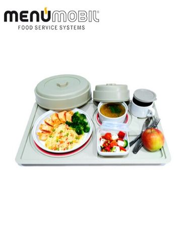 Все компоненты системы раздачи блюд подбираются индивидуально, исходя из потребностей пищевого блока. В оборудовании таблет-питания MenuMobil ContactLine контакты термоподноса соединяются с контактами тележки, после чего начинается распределение тепла по зонам подноса, отмеченных красным. Температуру разогрева блюда можно задать на сенсорном экране тележки. Блюда долго остаются нагретыми благодаря термоизоляционным крышкам. При неполной загрузке тележки нагреваются только полки с подносами, а на пустые полки подача тепла не производится. Охлаждение тележки осуществляется при помощи холодильных плит или колотого льда. Все материалы, используемые в оборудовании MenuMobil, соответствуют гигиеническим и санитарным нормам.
